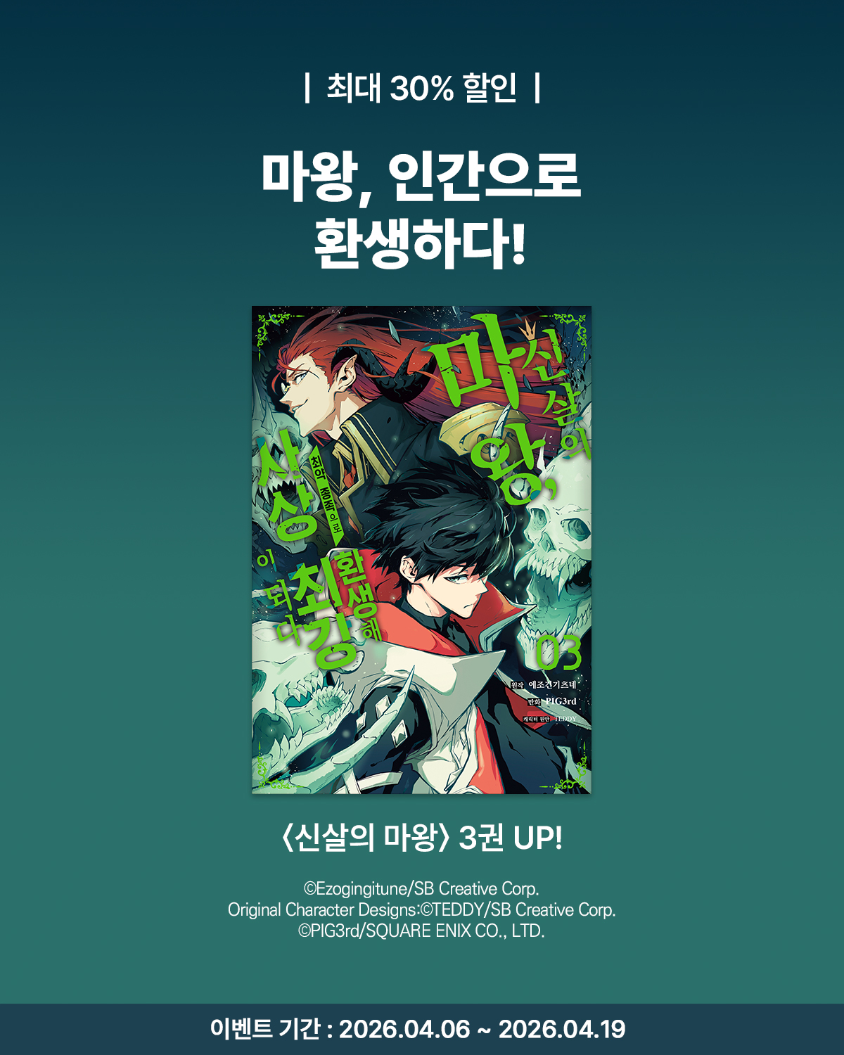 > [만화] 시프트코믹스 『신살의 마왕, 최약 종족으로 환생해 사상 최강이 되다』 3권 UP! (2026.04.06 ~ 2026.04.19)