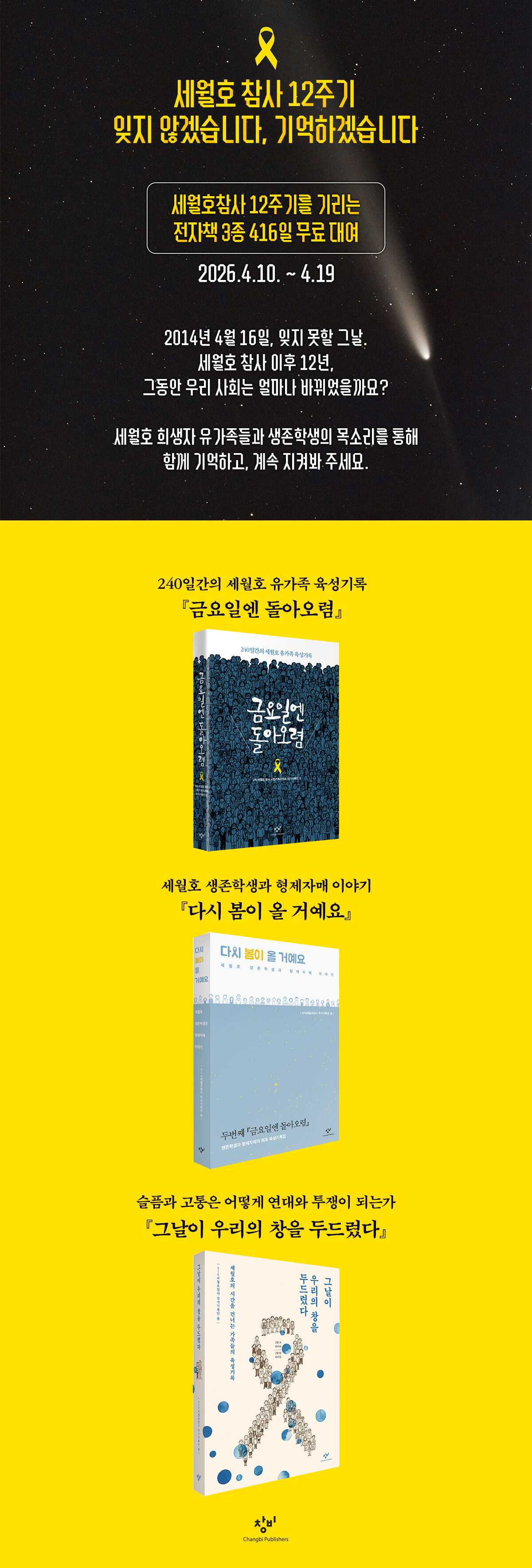 > [무료] "함께 기억해주세요" 세월호 참사 12주기를 기리는 전자책 3종 무료 (2026.04.10 ~ 2026.04.19)
