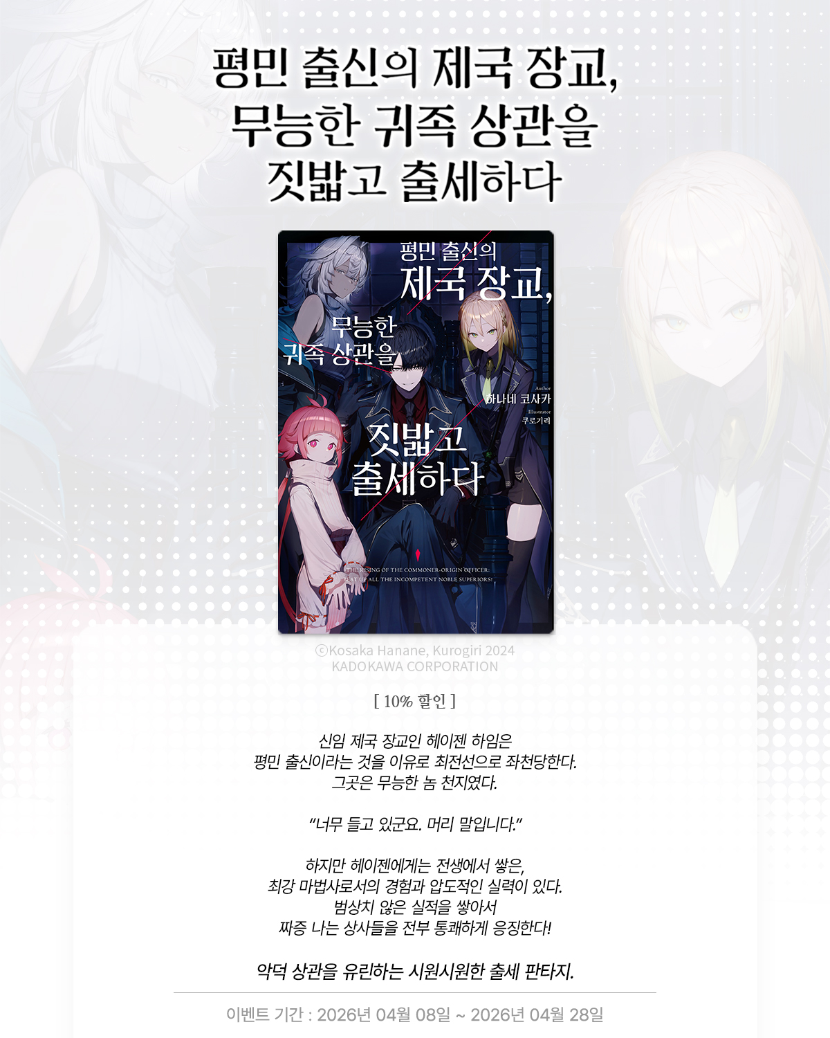 > [라노벨] 노블엔진 『평민 출신의 제국 장교, 무능한 귀족 상관을 짓밟고 출세하다』 오픈! (2026.04.08 ~ 2026.04.28)