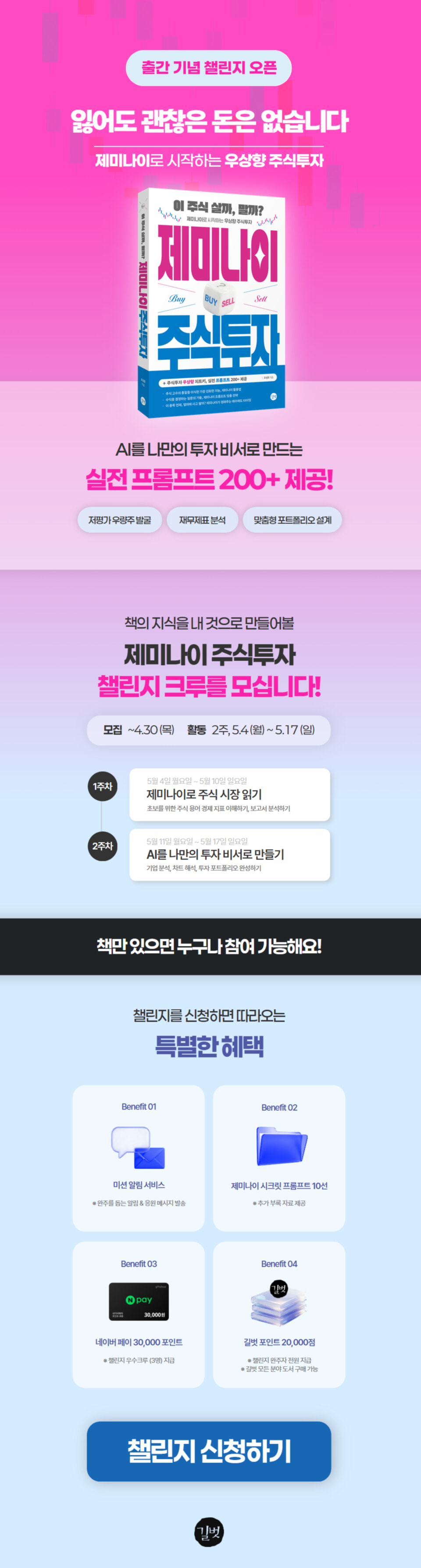 > 『제미나이 주식투자』 출간 기념 챌린지 오픈 (2026.04.06 ~ 2026.04.30)