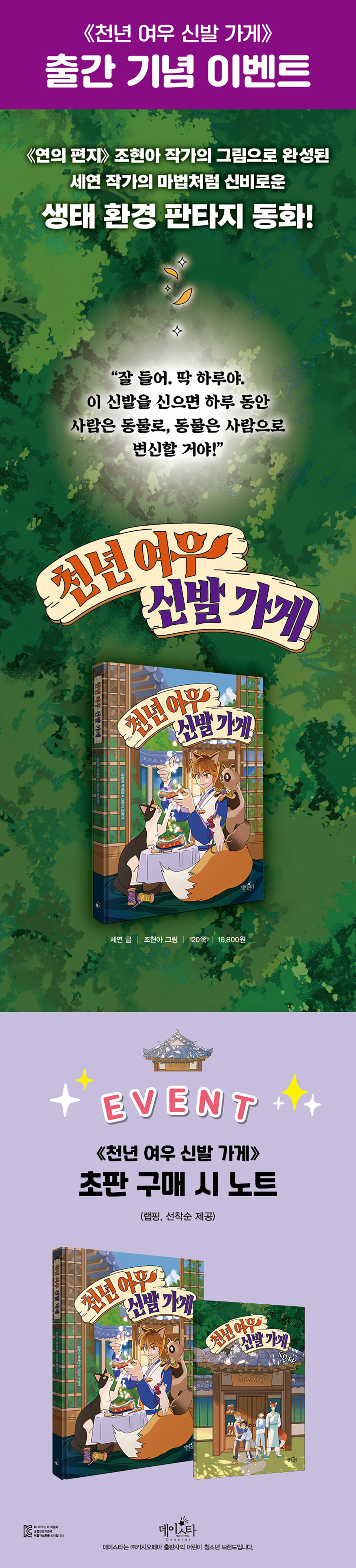 > 『천년 여우 신발 가게』 - 초판한정 노트 (책과랩핑) (2026.04.13 ~ 2200.12.31)