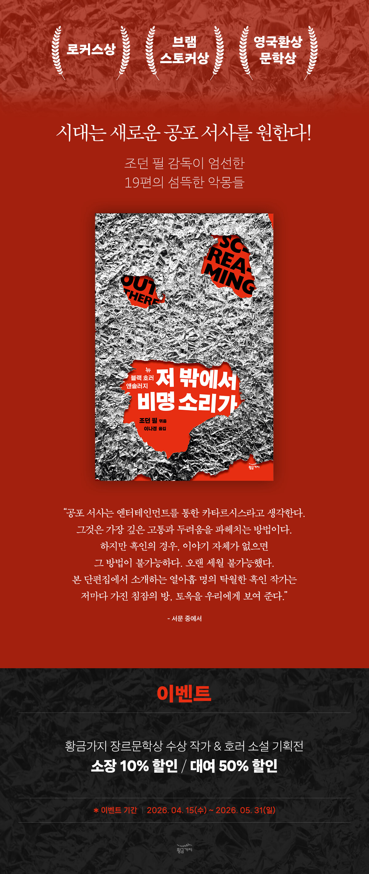 > [기획전] '겟 아웃' 감독이 엄선한 섬뜩한 악몽들 <저 밖에서 비명 소리가> (2026.04.15 ~ 2026.05.31)