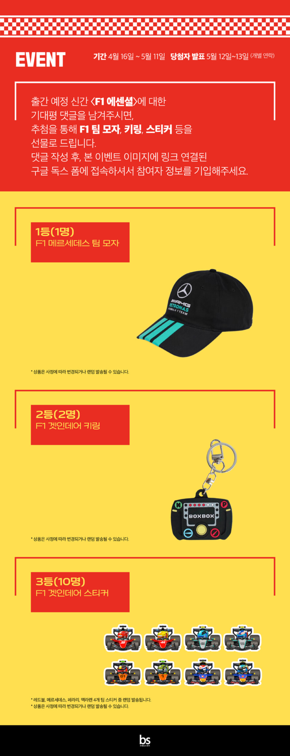 > F1 팀 모자, 키링, 스티커 추첨 증정! 『F1 에센셜』 기대평 이벤트 (2026.04.16 ~ 2026.05.11)