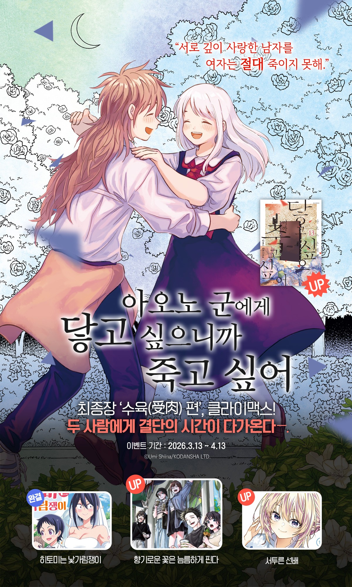 > [만화] 대원씨아이 『아오노 군에게 닿고 싶으니까 죽고 싶어』 13권 UP! (2026.03.13 ~ 2026.04.13)
