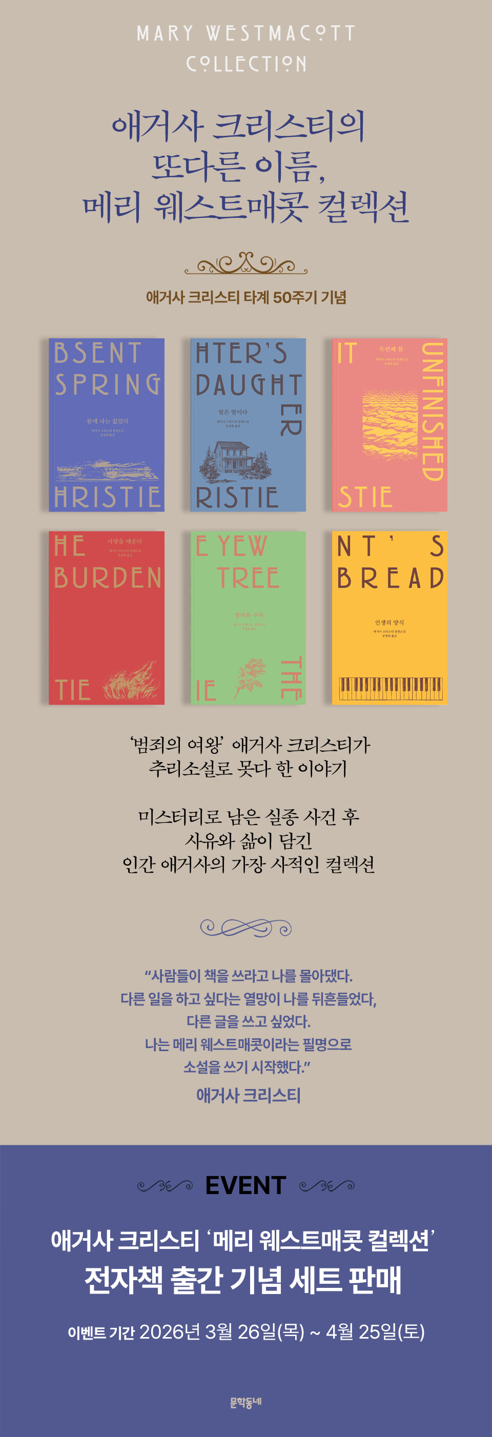 > [이벤트] 애거사 크리스티 타계 50주기 기념 '메리 웨스트매콧 컬렉션' (2026.03.26 ~ 2026.04.25)