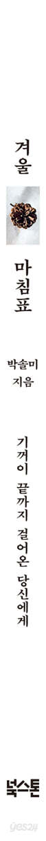 회사원, 엄마, 작가 등 여러 정체성으로 삶을 굴리는 박솔미의 글. 겨울에 이르러 조금은 후련하게 동그랗고 분명한 마침표를 찍으며 자신을 격려하는 시간.