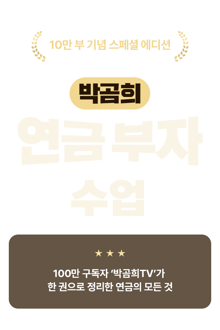 《박곰희 연금 부자 수업》에는 수많은 고객 자산관리 경험과 연금 투자 노하우를 바탕으로 체계화한 연금 투자 원칙을 담았다. 연금저축, IRP, ISA 등 4개의 통장으로 3억 원을 만들고, 월배당 ETF를 전략적으로 활용해 월 300만 원의 마르지 않는 돈의 흐름을 설계하는 구체적 방법을 제시한다. 개인파산 신청자의 86%가 50대 이상인 현실에서, 20~30대에게는 지금부터의 준비가 얼마나 중요한지를, 40~50대에게는 연금 투자가 아직 늦지 않았다는 희망을 전하며, 누구나 쉽게 튼튼한 노후 자산 파이프라인을 마련할 수 있도록 돕는다.