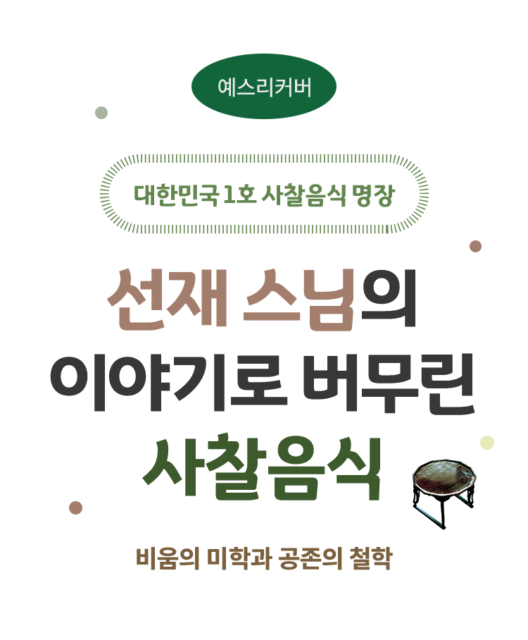 『[예스리커버] 선재 스님의 이야기로 버무린 사찰음식』 구매시 사은품 '비움과 공존 나무 수저' 선택