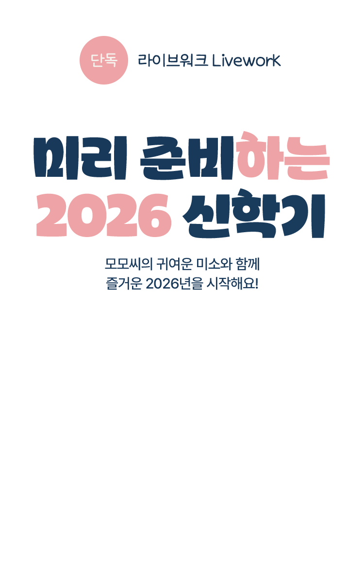 라이브워크 상품으로 3만원 이상 구매 시 <모모씨 스티커팩>을 증정합니다.
