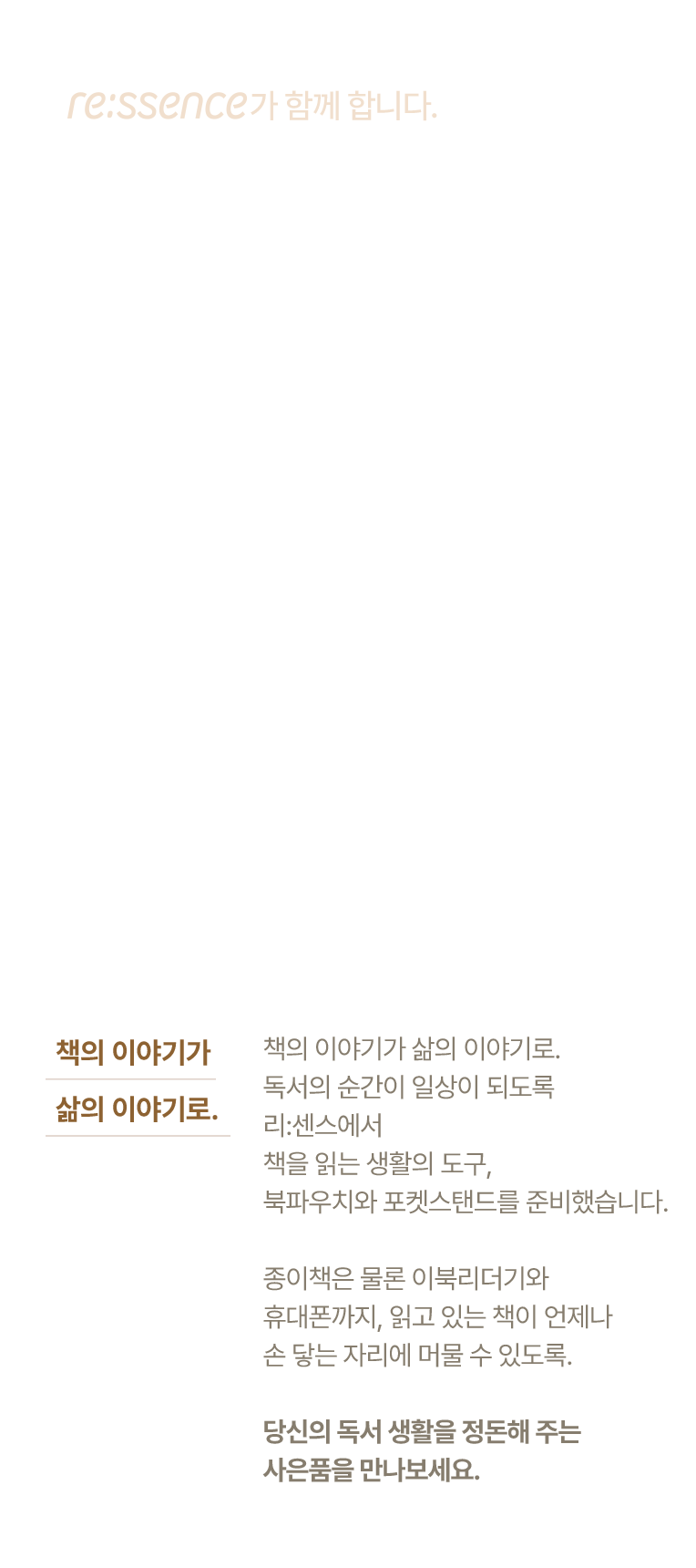 •  리:센스 상품으로 3만원 이상 구매 시 <멀티 북파우치 (블랙), 포켓스탠드(블랙) 중 택1> 사은품을 증정합니다. (포인트 차감)