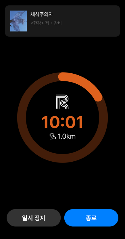 책을 읽는 동안 타이머를 실행하면 10분당 1km 거리로 기록됩니다.